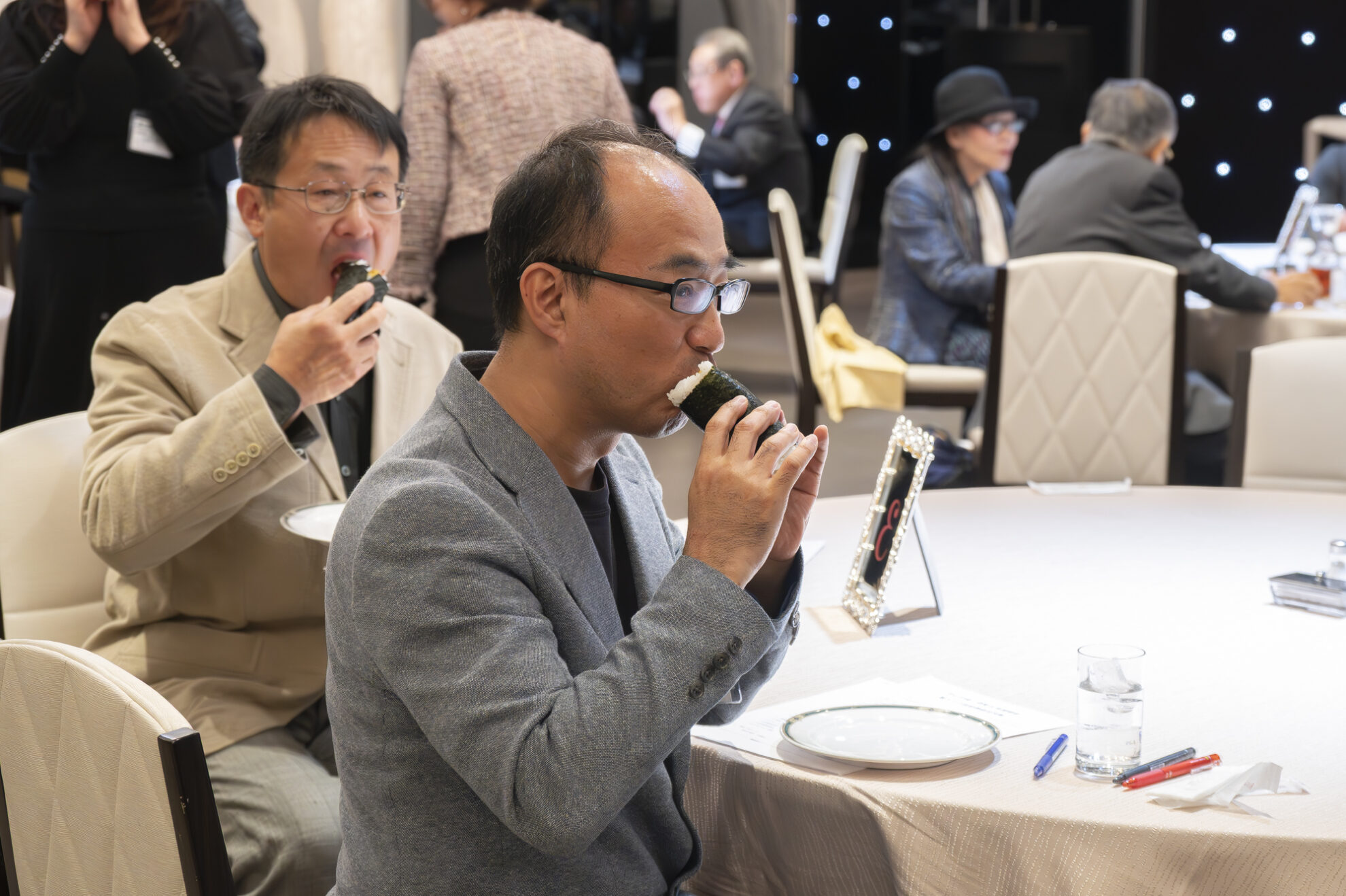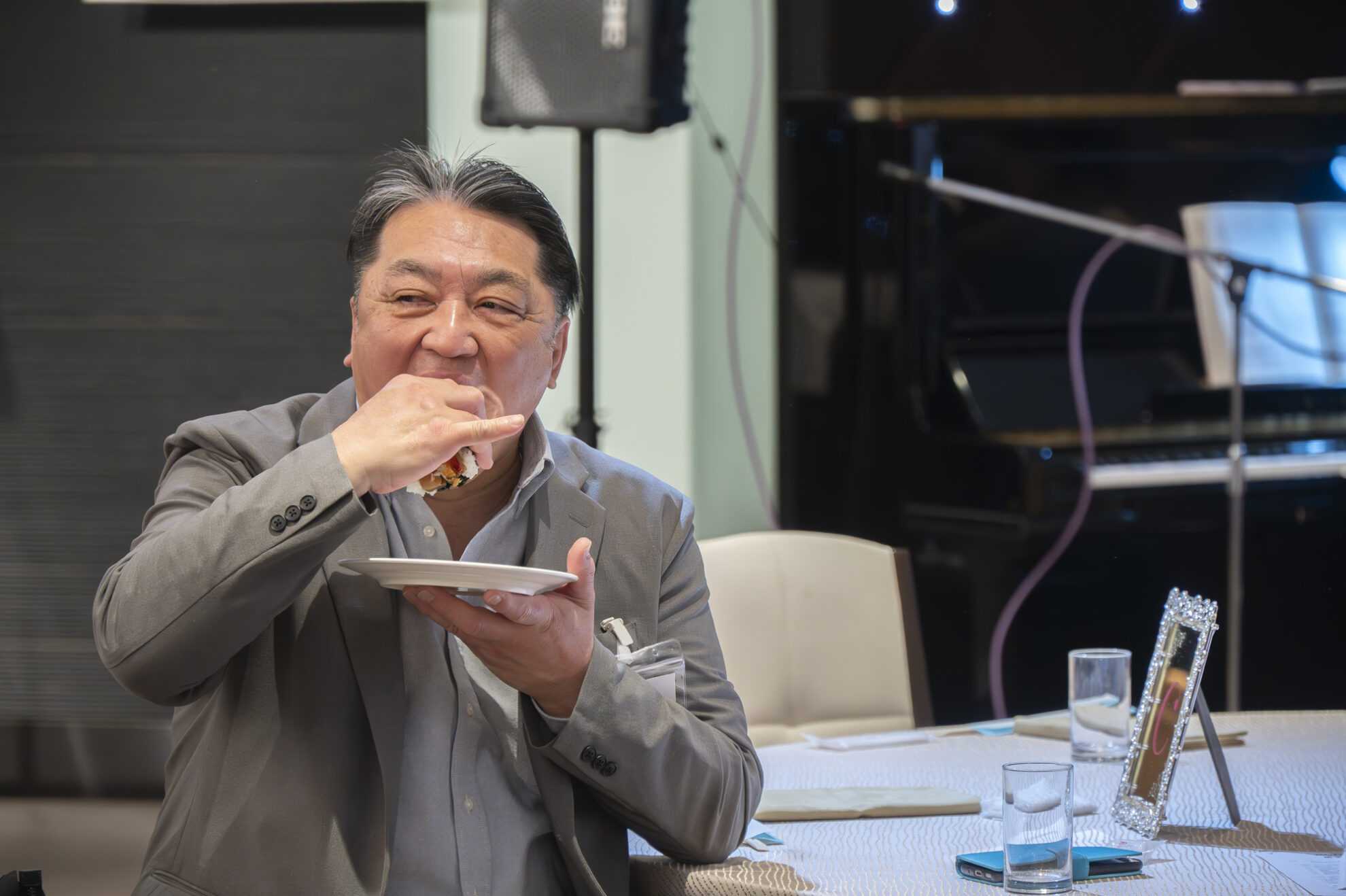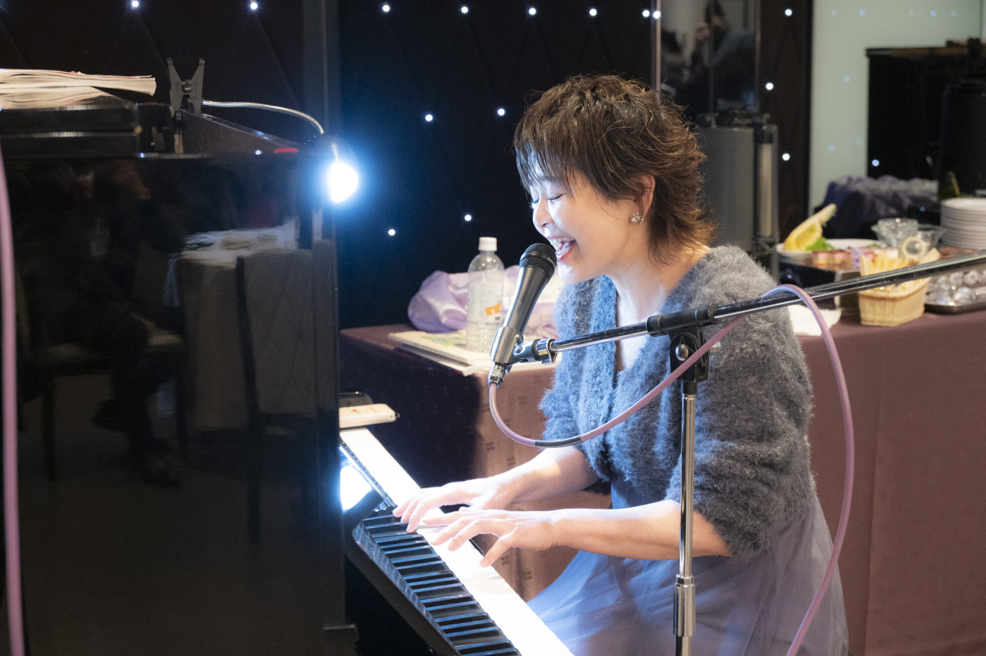 ピアノの生演奏を聴きながら、ホテルの美味しいお料理を食べつつ、会員同士の交流が行われました。
