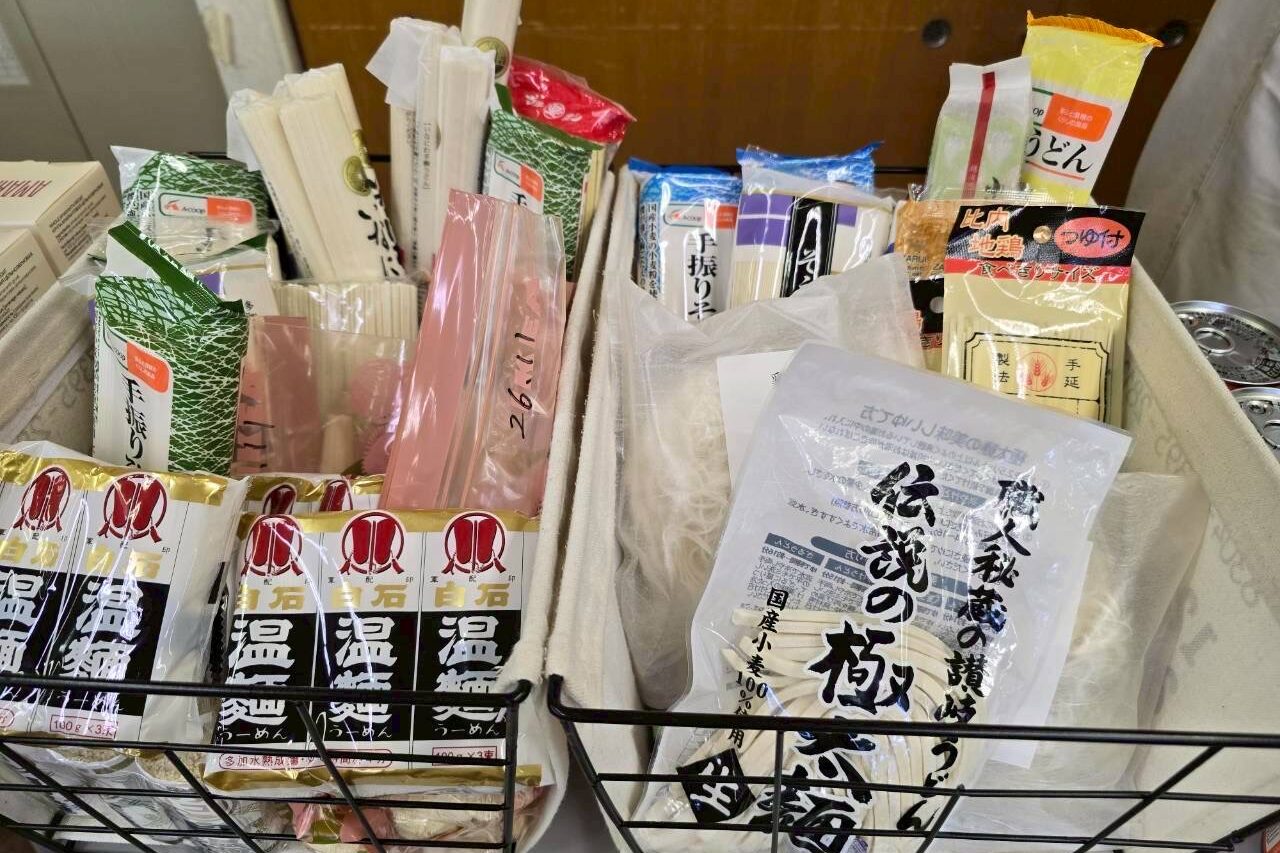 お米、パスタ、アルファ米、乾麺、ライスパック、調味料、レトルト、缶詰、お菓子、乾物、カップメン、飲料、調理パン、衣類、カバン、靴、日用品、食器、雑貨、などを